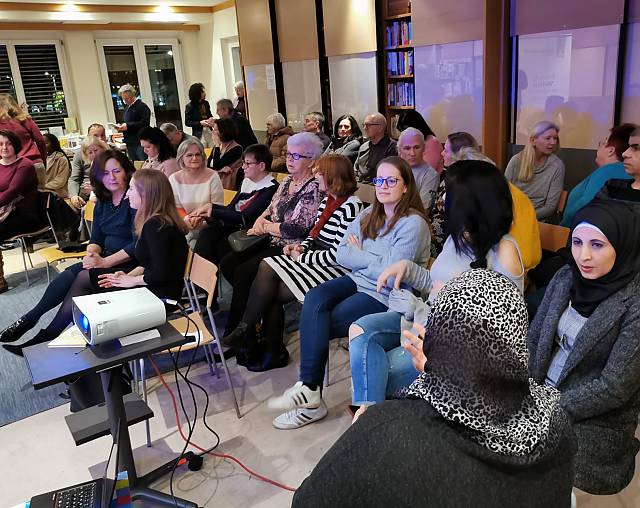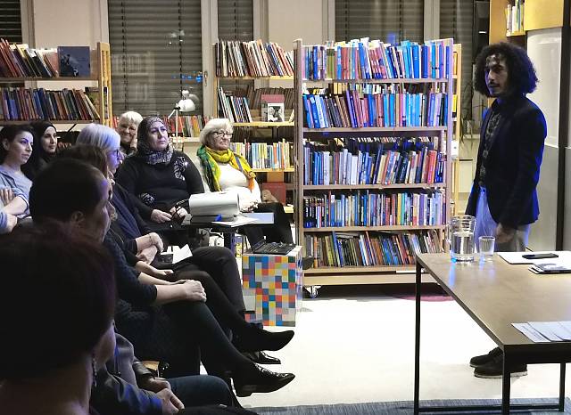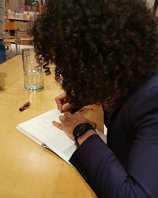 Literaturhaus MattersburgDer junge Syrer Omar Khir Alanam hat sein Debüt "Danke! Wie Österreich meine Heimat wurde" und seine Geschichte über seine Flucht, sein neues Zuhause in Graz und das Einleben in eine neue Sprache im Literaturhaus vorgestellt. Beeindruckend war das Format des frei vorgetragenen Gedichts und die Performance aus Gesang und Tanz, die Momente der Revolution, der Wut und Trauer nah zu uns in einen gemeinsamen Raum herangetragen haben. Für einige Besucher*innen Erinnerungen an ihre eigene Geschichte, für einige ein neuer Zugang zum Syrienkrieg und Flucht. Nach der Performance konnte man mit Omar Khir Alanam noch ins Gespräch kommen und Bücher signieren lassen.
